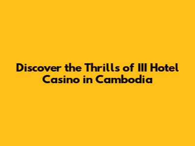 Hey there, fellow travel and casino enthusiasts! Today, we're diving deep into one of Cambodia's most talked-about entertainment hubs: the III Hotel Casino. If you're looking for a place that blends luxury, excitement, and the vibrant culture of Southeast Asia, then buckle up, because we're about to explore what makes this spot a must-visit. We'll cover everything from the games on offer to the overall experience, so you know exactly what to expect when you plan your trip. Get ready to find out why III Hotel Casino in Cambodia is creating such a buzz in the region.