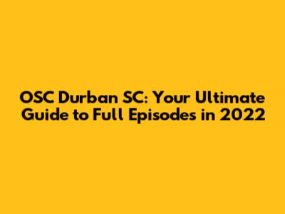 Hey there, entertainment enthusiasts! Are you on the hunt for the full episodes of OSC Durban SC from 2022? You've landed in the right spot! This comprehensive guide is your one-stop shop for everything you need to know about watching your favorite episodes. We'll dive into where you can find them, what to expect, and some insider tips to make your viewing experience top-notch. So, grab your popcorn, settle in, and let's explore the world of OSC Durban SC together. This year was amazing.