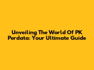 Unveiling The World Of PK Perdata: Your Ultimate Guide
