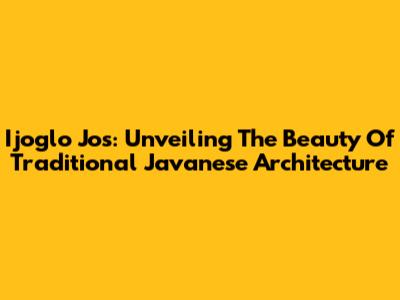 Ijoglo Jos: Unveiling The Beauty Of Traditional Javanese Architecture