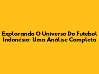 Explorando O Universo Do Futebol Indonésio: Uma Análise Completa