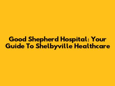 Good Shepherd Hospital: Your Guide To Shelbyville Healthcare